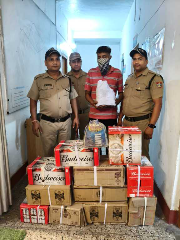 जानकारी के अनुसार, पकड़ा गया व्यक्ति नवीन कुमार सिंह पुत्र उदय शंकर सिंह निवासी कुसुमखेड़ा थाना मुखानी है। टीम ने उसके कब्जे से 11 पेटी अवैध शराब बरामद की है, जिसमें —